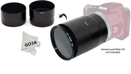 * Lens adapter designed for NIKON COOLPIX P100.* Made of high quality black anodized aluminum.* The adapter provides a 67mm filter mount to add a 67mm filter (UV, CPL, MC, UV etc.) to improve picture quality.* The adapter also allows user to add other lens accessories (as tele/close-up/wide-angle lenses) to the camera.* Also included with your purchase you will receive an Ultra Fine Microfiber Cleaning Cloth Goja Logo perfect for cleaning camera lenses and glass products.